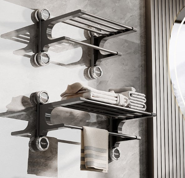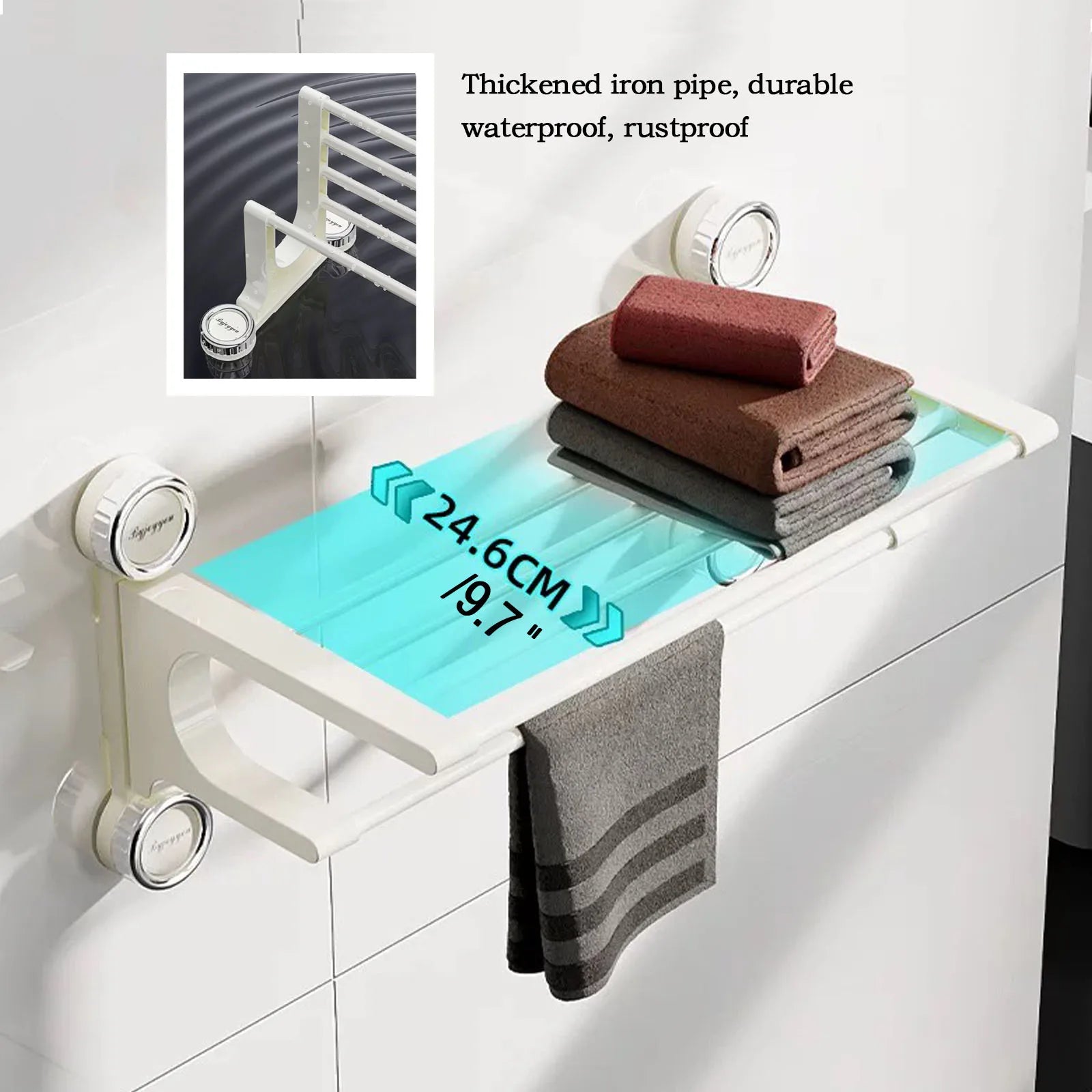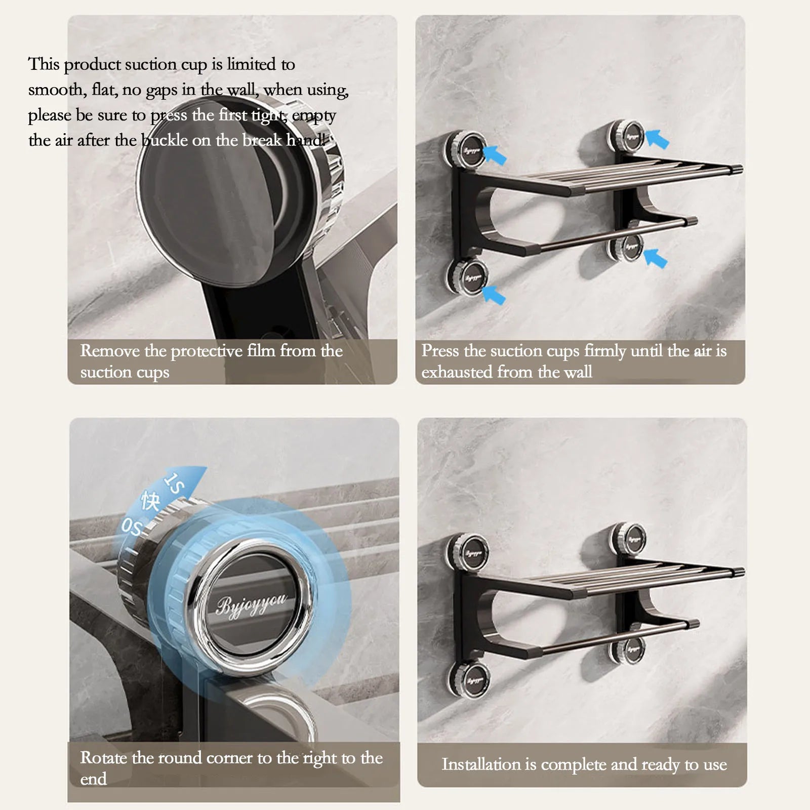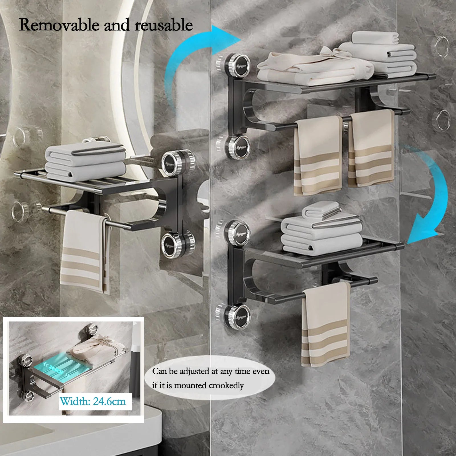 رف مناشف حمام مزود بكأس شفط مصنوع من الفولاذ المقاوم للصدأ ورف حمام مزدوج الطبقات قابل للإزالة لتخزين وتجفيف المناشف